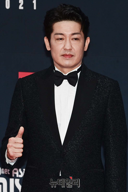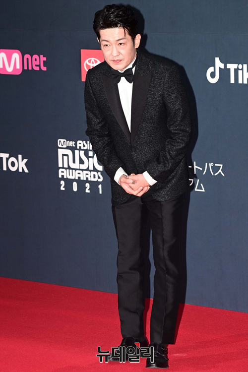 배우 허성태가 11일 오후 경기 파주시 CJ ENM 스튜디오 센터에서 열린 '2021 엠넷 아시안 뮤직 어워즈(2021 MAMA)' 레드카펫에서 포즈를 취하고 있다.