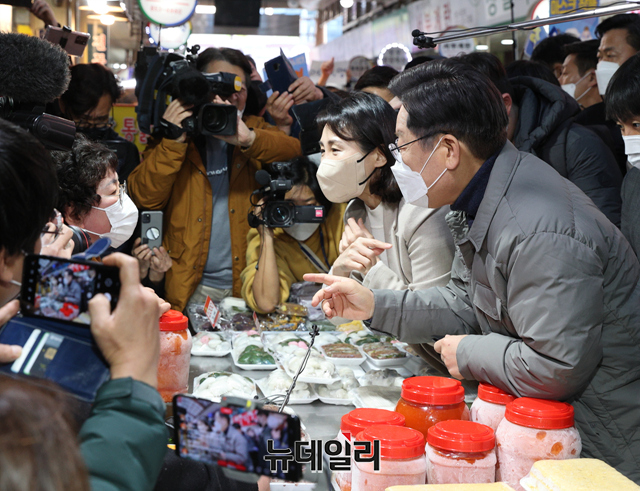 [포토] 안동 중앙신시장 찾은 이재명 대선후보 내외