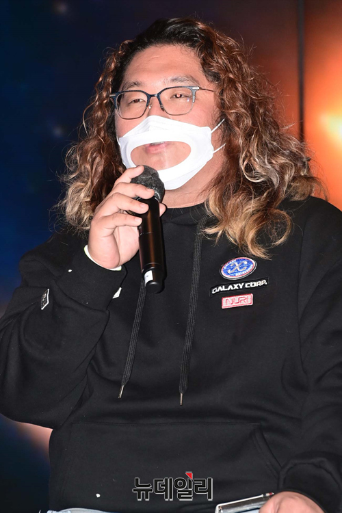 최용호 연출가가 14일 오전 서울 종로구 동대문 JW메리어트 호텔 그랜드볼룸에서 열린 TV조선 예능 '부캐전성시대' 제작발표회에서 발언하고 있다.'부캐전성시대'는 페르소나별의 수도 새울시가 정체불명의 '블루 바이러스'로 힘겨워 하고 있는 시대에 치료제인 행복을 찾기 위해 나선 다섯 분파의 이야기를 다룬 예능이다.