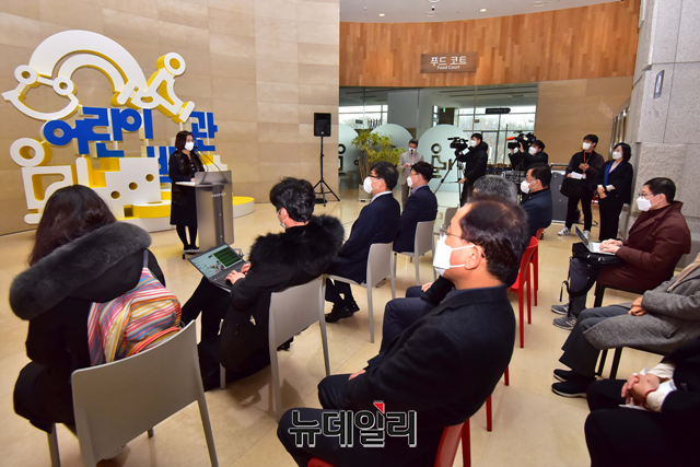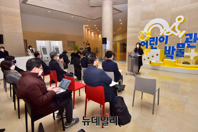 곽신숙 어린이박물관 과장이 14일 오전 서울 용산구 국립중앙박물관 '아하! 발견과 공감' 어린이박물관 상설전시관에서 열린 언론공개회에서 발언을 하고 있다.국립중앙박물관은 "어린이들이 역사문화를 관찰하고 탐구과정을 즐기고 문화재에 대한 창의적인 생각을 키울 수 있도록 기획한 전시다"고 말했다.