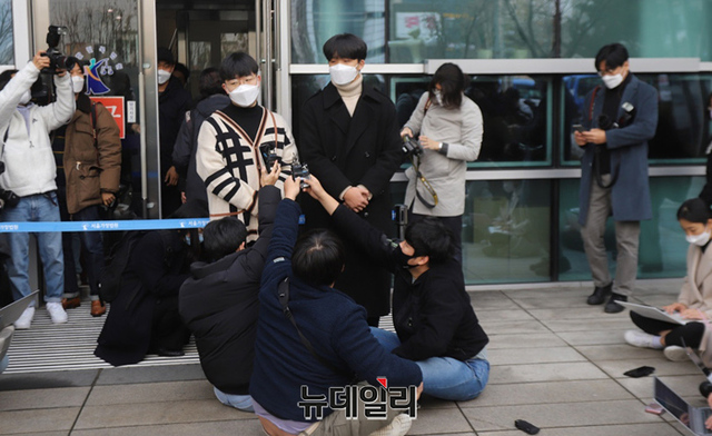 올해 수능 과학탐구영역 생명과학2 20번 문항의 정답 논란과 관련해 행정소송을 제기한 학생들이 15일 오후 서울행정법원에서 1심 직후 입장을 밝히고 있다.