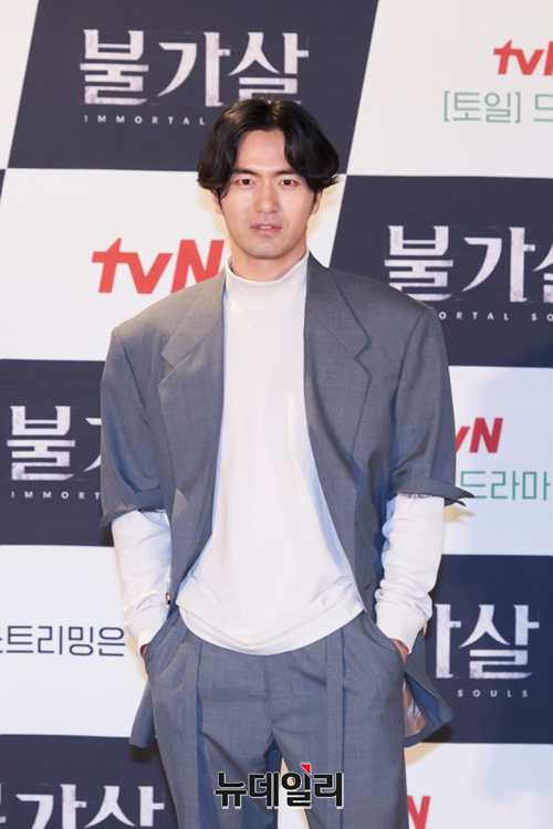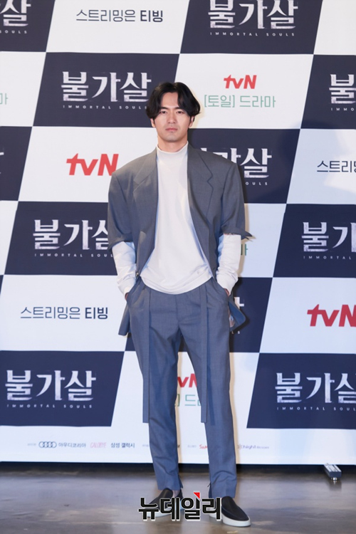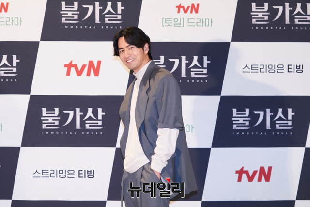 배우 이진욱이 15일 오후 온라인으로 열린 tvN 새 토일드라마 '불가살(연출 장영우, 극본 권소라·서재원)' 제작발표회에서 포즈를 취하고 있다.