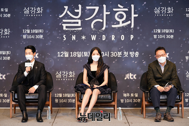 블랙핑크 지수가 16일 오후 온라인으로 열린 JTBC 토일드라마 '설강화:snowdrop(극본 유현미, 연출 조현탁)' 제작발표회에서 인사말을 하고 있다.