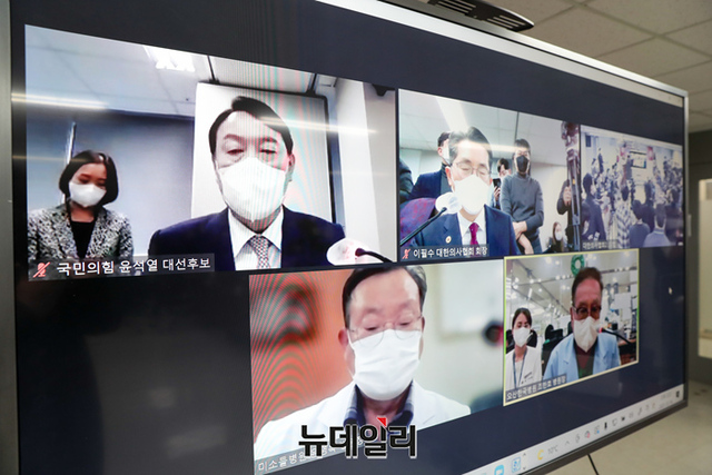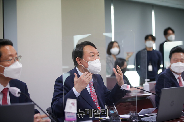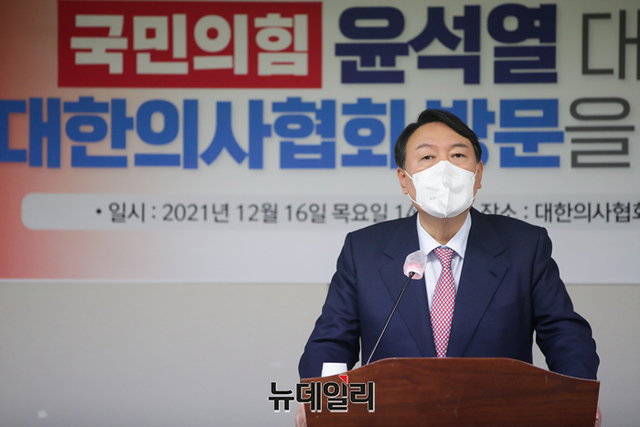 윤석열 국민의힘 대선후보가 16일 오후 서울 용산구 대한의사협회에서 '코로나19 대응 문제점과 개선 방안' 간담회에 참석해 발언하고 있다. (사진=윤석열 캠프)