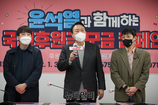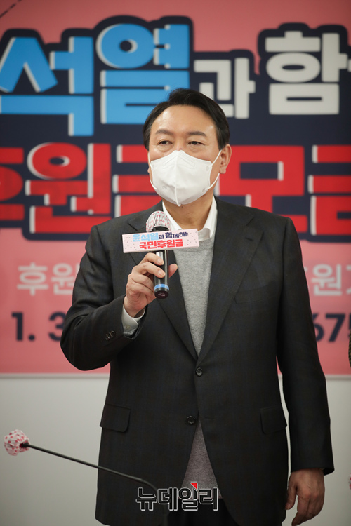 윤석열 국민의힘 대선 후보가 17일 서울 여의도 당사에서 열린 '윤석열과 함께하는 국민후원금 모금 캠페인'에서 인사말하고 있다. (사진=윤석열 캠프)