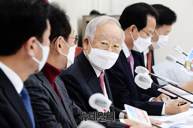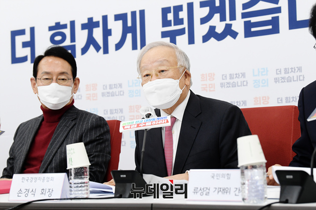 손경식 한국경영자총협회장이 20일 오후 국회에서 김도읍 국민의힘 정책위의장과 만나 발언을 하고 있다. (사진=공동취재단)