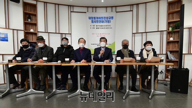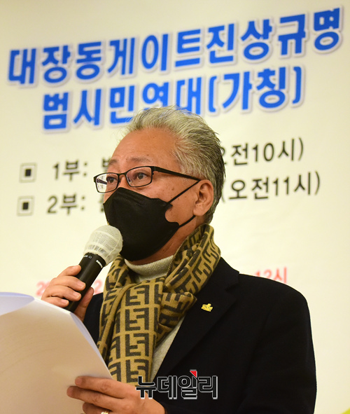 '대장동게이트진상규명 범시민연대'가 20일 오전 서울 여의도 소재 하우스 카페에서 출범 기자회견을 갖고 있다.이날 참석자들은 "대장동게이트진상규명범시민연대 출범의 최종 목표는 대장동게이트진상규명과 책임자 처벌"이라며 "보수·중도 등 시민사회단체가 참여해 동일한 목소리 내는 데 역사적 의미가 있다"고 밝혔다.'대장동게이트진상규명 범시민연대에는 깨어있는시민연대당(깨시연), 전국철거민협의회중앙회, 대장동부패수익국민환수단, 대장동특검을위한시민연대, 바른사회시민회의, 부동산적폐청산행동, 투기자본센터 등이 동참했다.연대 측은 ▲검·경의 대장동 수사 촉구를 위한 대규모집회 추진 ▲각 정당에 대한 대장동특검 촉구 ▲전국 순회집회 및 기자회견 등을 진행할 예정이다.