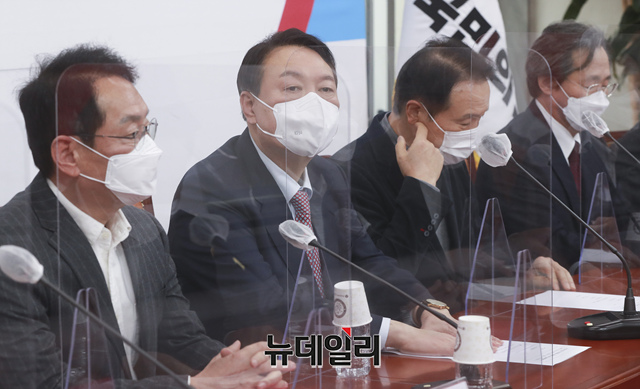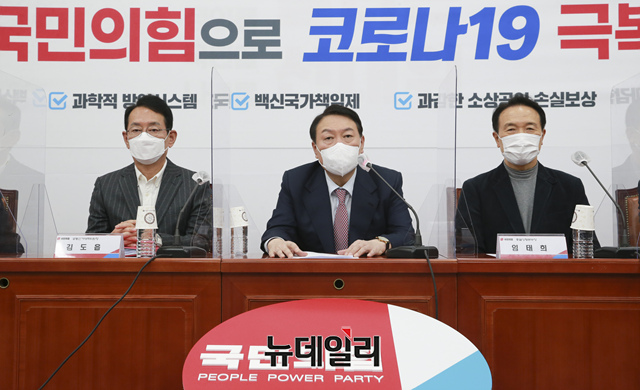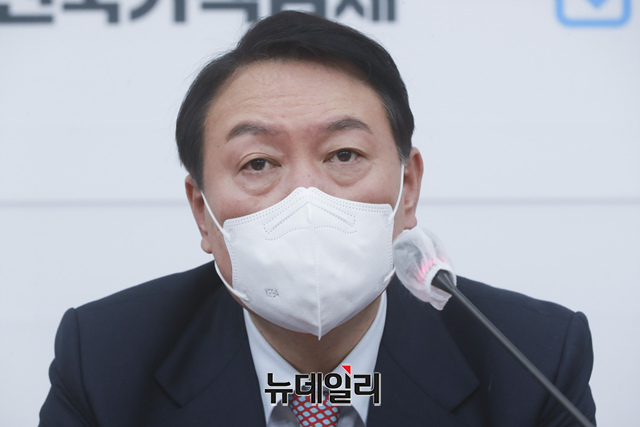 윤석열 국민의힘 대선후보가 21일 오전 국회에서 열린 코로나19 극복을 위한 비상대책회의에서 모두발언을 하고 있다. (사진=공동취재단)