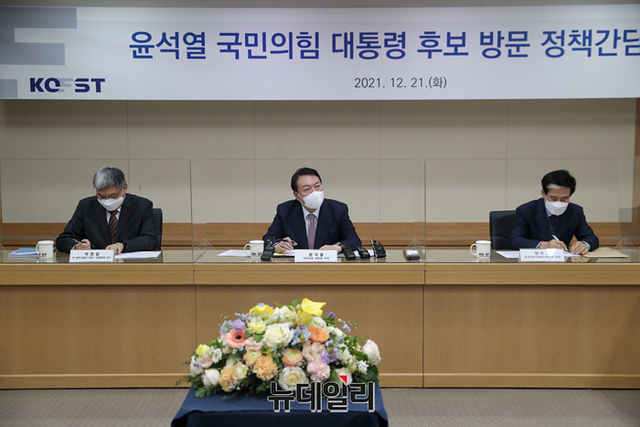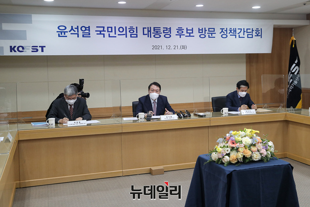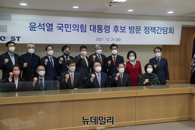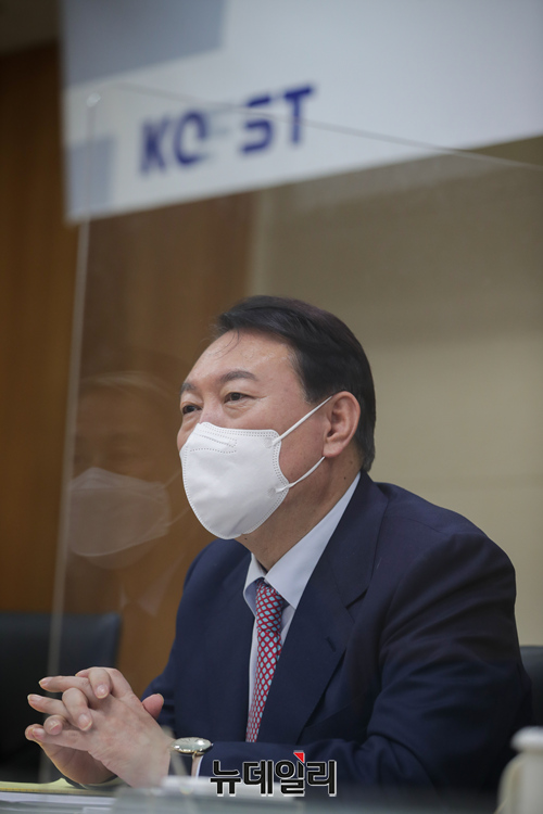 윤석열 국민의힘 대선후보가 21일 오후 서울 강남구 한국과학기술회관에서 열린 간담회에 참석해 인사말을 하고 있다. (사진=윤석열 캠프)