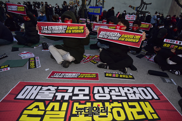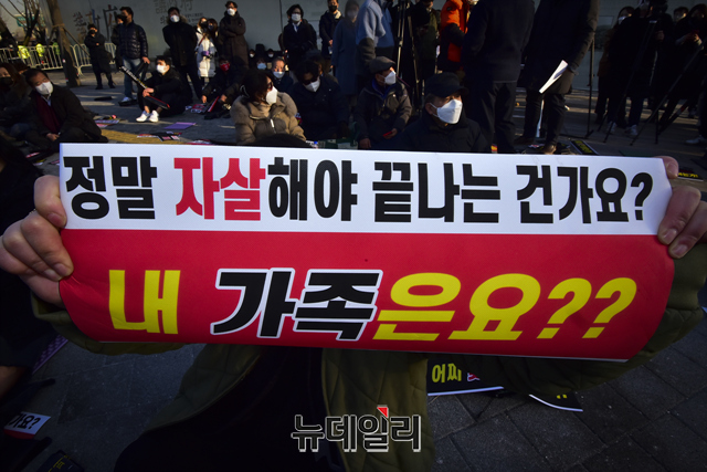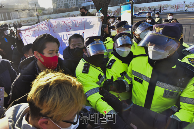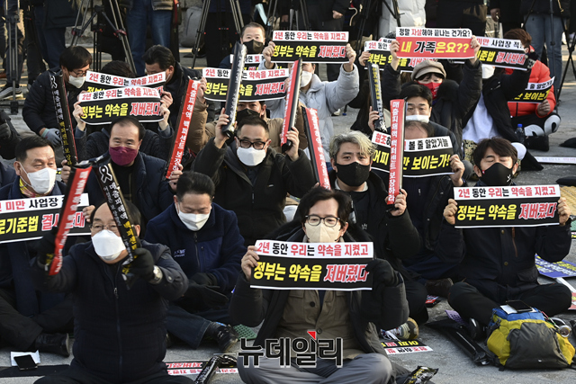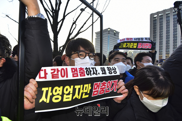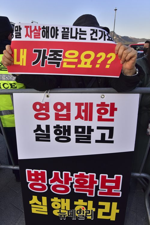집회에 참여한 한 자영업자는 "정부의 방역 강화로 연말 대목도 놓치고, 자영업 생계도 무너졌다"고 말했다.