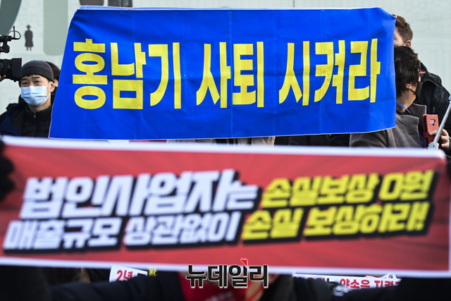 이날 총궐기대회에는 소상공인연합회 회원과 전국자영업자비대위 등이 대거 참여했다. 이들은 △소상공인 지원 확대 △영업제한 철폐 △근로기준법 5인 미만 사업장 확대 적용 반대 등을 정부에 촉구했다.