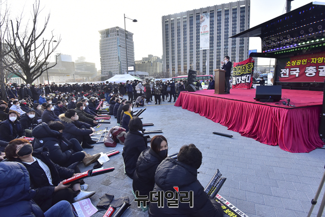 이날 총궐기대회엔 소상공인연합회와 전국자영업자비대위 등이 대거 참여했다. 이들은 정부에 △소상공인 지원 확대 △영업제한 철폐 △근로기준법 5인 미만 사업장 확대 적용 반대 등을 촉구 했다.