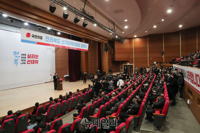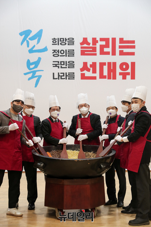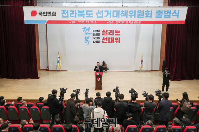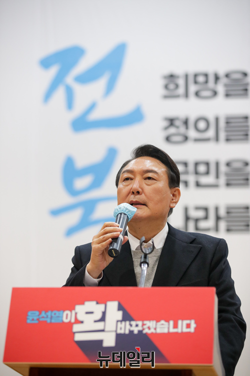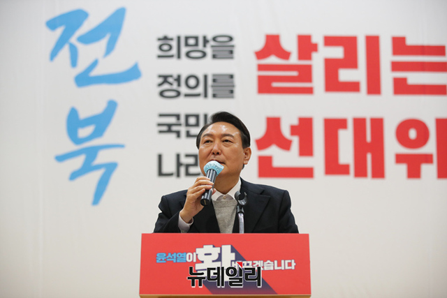 호남지역을 방문중인 윤석열 국민의힘 대선후보가 22일 오후 전북대 학술문화회관에서 열린 전북 선대위 출범식에서 기념촬영을 하고 있다. (사진=윤석열 캠프)
