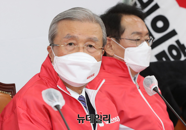 김종인 국민의힘 총괄선대위원장이 23일 오전 국회에서 열린 중앙선거대책위원회의에서 발언하고 있다. (사진=공동취재단)