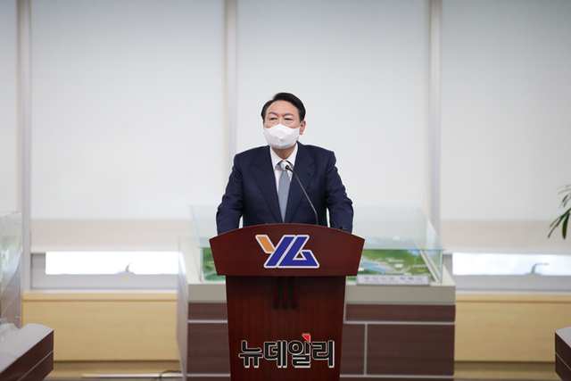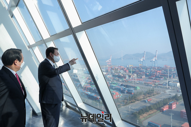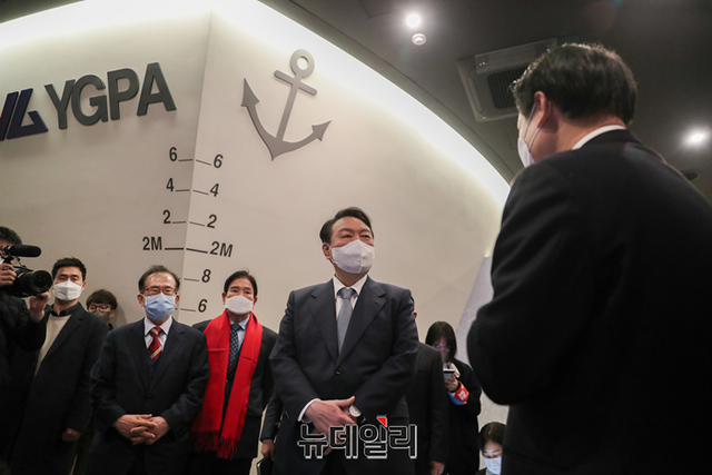 호남지역을 방문중인 윤석열 국민의힘 대선후보가 23일 오후 전남 광양시 여수광양항만공사를 방문해 시설을 둘러보고 있다. (사진=윤석열 캠프)