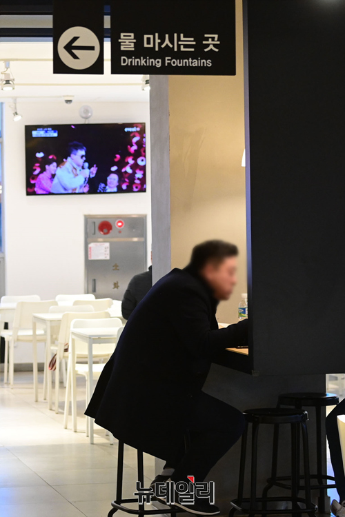 정부가 다음주 거리두기 연장 여부 발표를 앞두고 24일 오후 경기지역의 한 고속도로 휴게소를 찾은 시민들이 식사를 하고 있다.