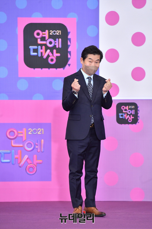 방송인 이연복이 25일 오후 서울 여의도 KBS에서 온라인으로 열린 '2021 KBS 연예대상' 레드카펫에서 포즈를 취하고 있다.