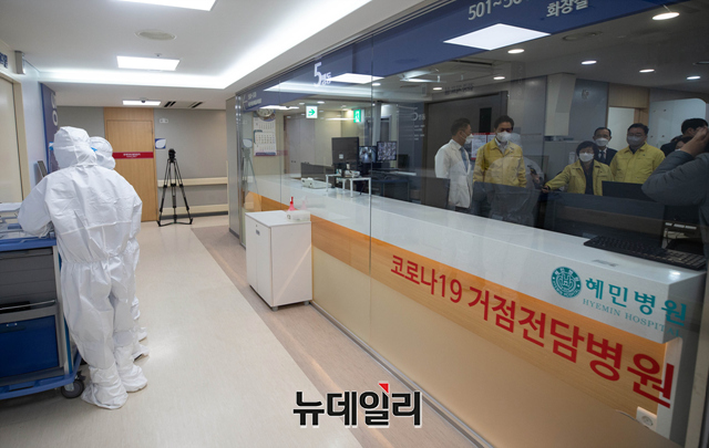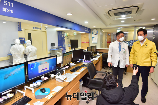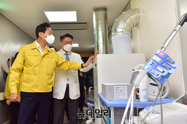 [포토] 최초 코로나19 거점전담병원 찾은 오세훈 서울시장