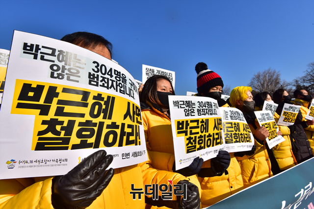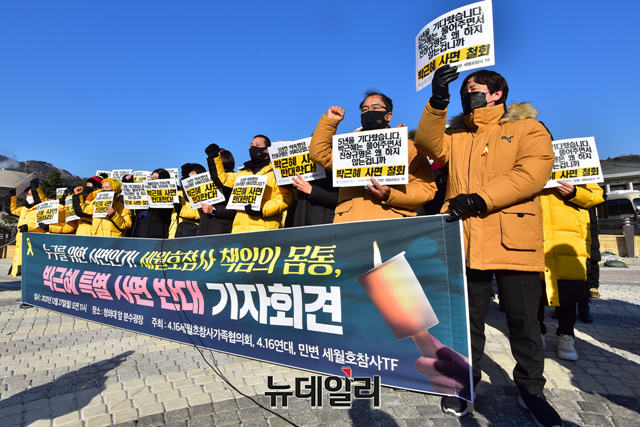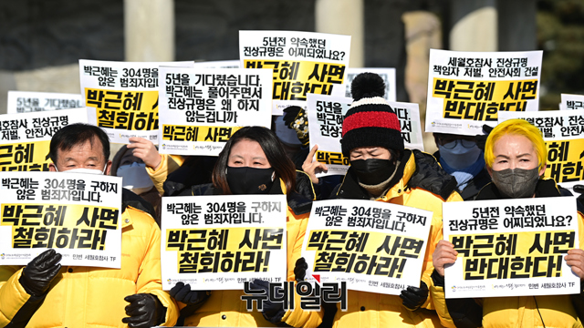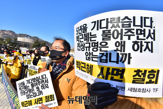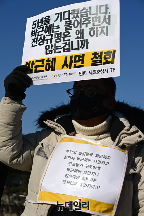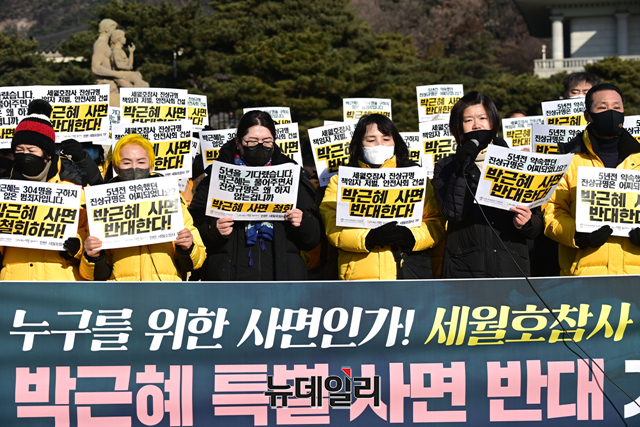 [포토] 박근혜 전 대통령 특별사면 반대 촉구하는 세월호단체