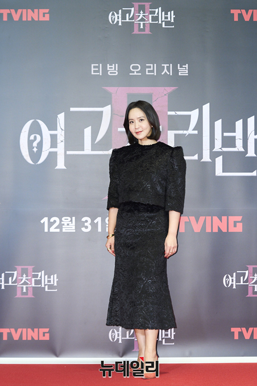 방송인 박지윤이 28일 오전 온라인으로 열린 티빙 예능 '여고추리반 시즌2' 제작보고회에서 포토타임을 갖고 있다. 시즌2는 태평여자고등학교로 전학 간 추리반 학생 5명이 거대한 사건을 만나면서 벌어지는 이야기를 담았다.