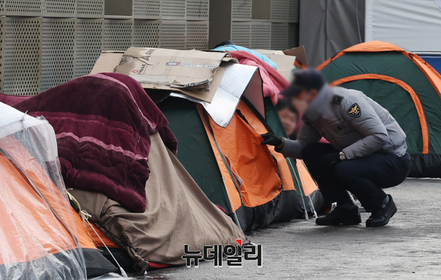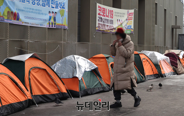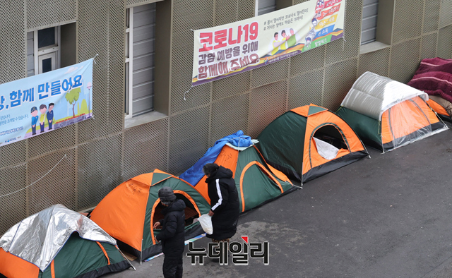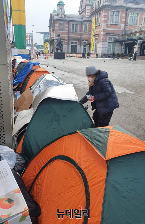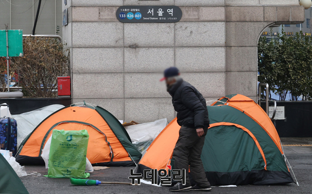 [포토] 서울역 광장에 마련된 코로나 노숙인 수용 텐트