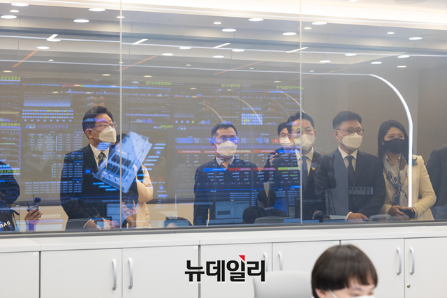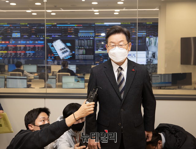 이재명 더불어민주당 대선후보가 29일 서울 광진구 보건복지행정타운의 한국사회보장정보원을 방문해 전산장비실을 둘러보고 있다. (사진=이재명 캠프)