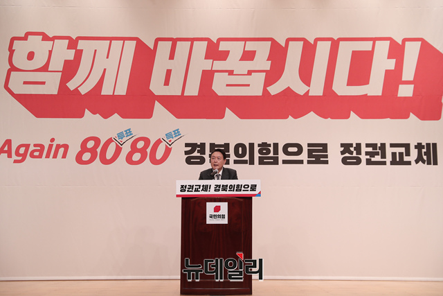 윤석열 국민의힘 대선 후보가 29일 경북 안동 한국국학진흥원에서 열린 경북 선대위 출범식에서 연설하고 있다. (사진=윤석열 캠프)