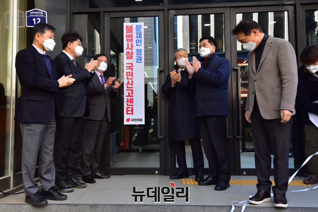 [포토] 국민의힘, 문재인정권 불법사찰 신고센터 현판식