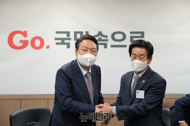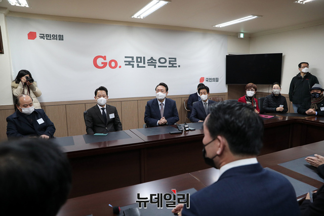 대구·경북지역을 방문중인 윤석열 국민의힘 대선후보가 30일 대구 모처에서 친박단체와 만나 간담회를 갖고 있다. (사진=윤석열 캠프)
