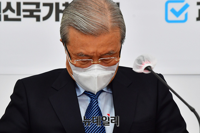 [포토] 눈감은 김종인 국민의힘 총괄선대위원장
