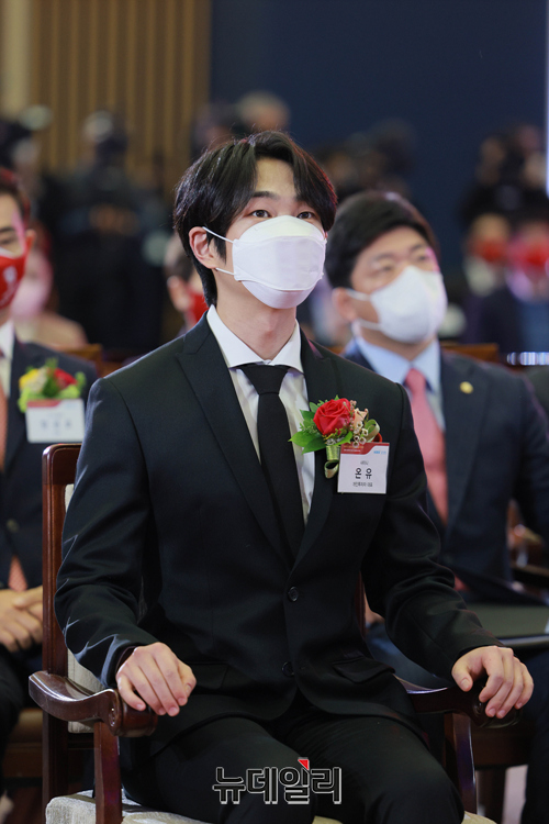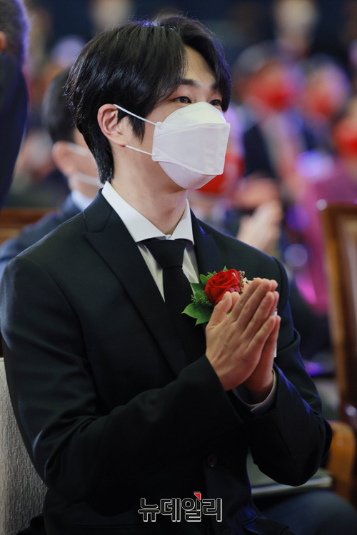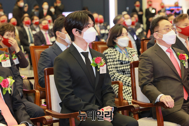 샤이니 멤버 온유가 3일 오전 서울 여의도 한국거래소에서 열린 '2022 신년하례식 및 증권·파생상품시장 개장식'에서 개인 투자자 대표로 참석해 있다.