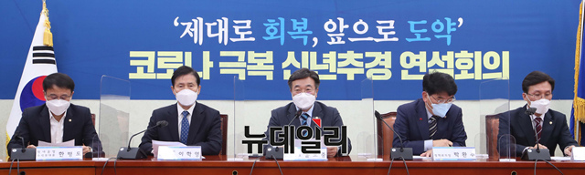 윤호중 더불어민주당 원내대표가 5일 서울 여의도 국회에서 열린 코로나 극복 신년추경 연석회의에서 발언하고 있다. (사진=공동취재단)
