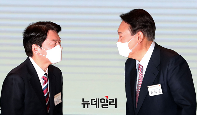 [포토] 행사서 만난 윤석열·안철수 대선 후보