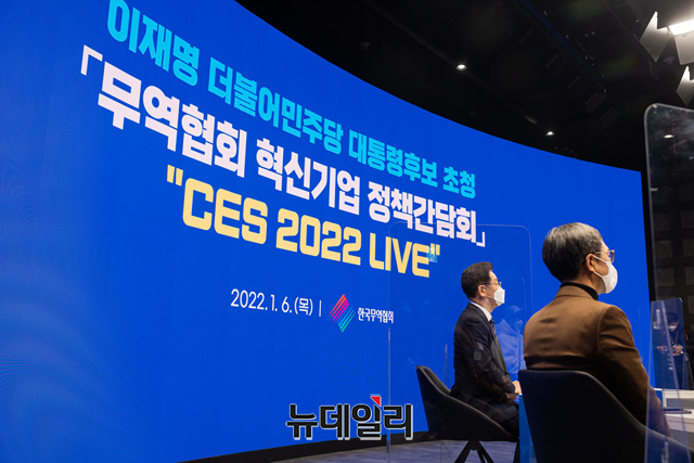 [포토] "CES2022 LIVE" 혁신기업 정책간담회 참석한 이재명