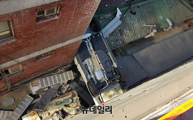 [포토] 숭례문 인근 주차장 건물서 SUV 차량 추락... 인명피해 없어