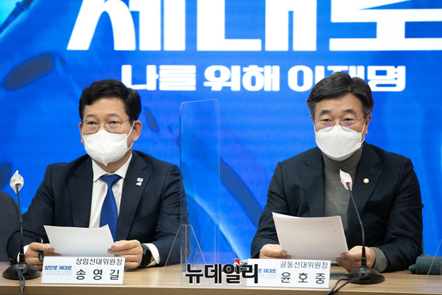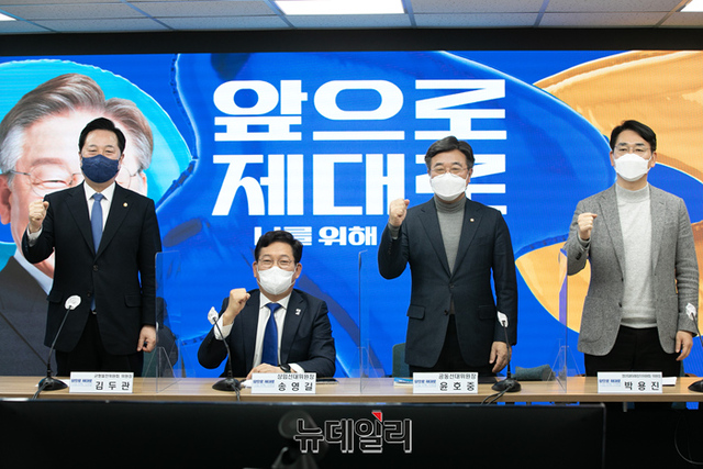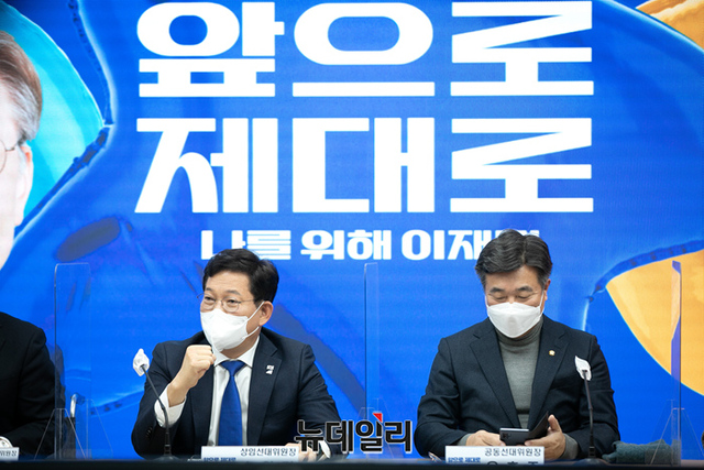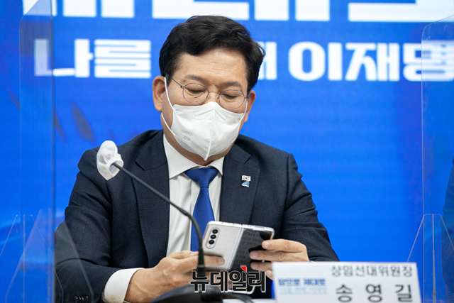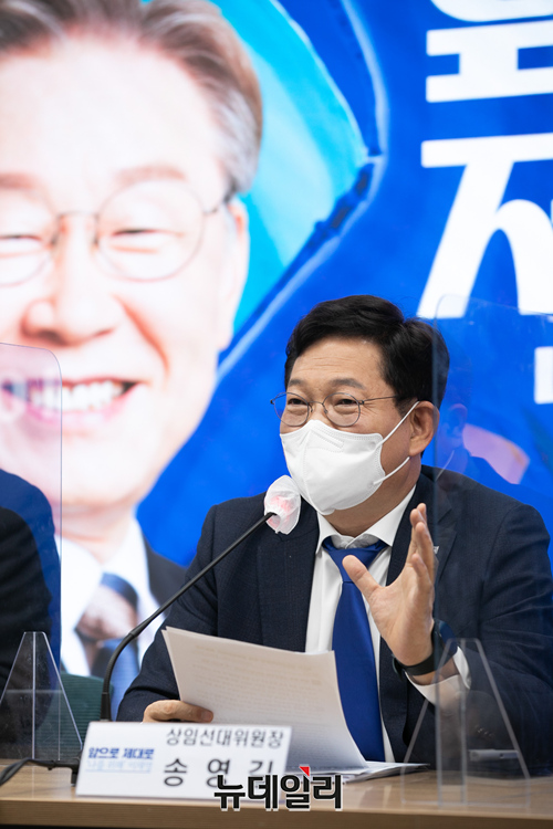송영길 더불어민주당 상임선대위원장이 7일 오전 서울 여의도 더불어민주당 중앙당사 대회의실에서 열린 선대위 본부장단 회의에서 모두발언을 하고있다. (사진=공동취재단)