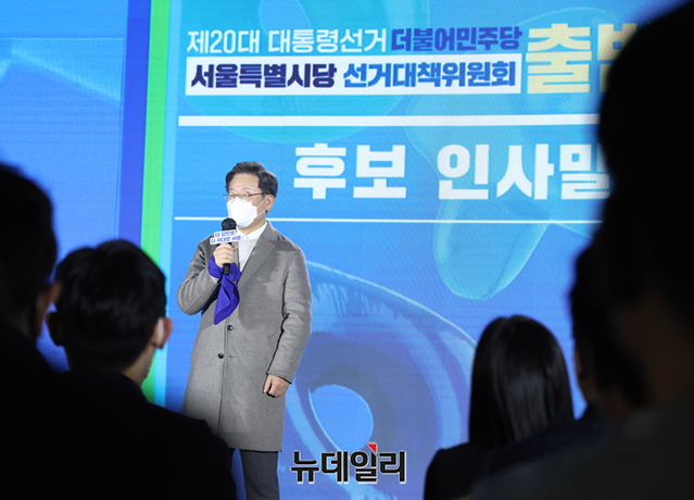 이재명 더불어민주당 대선후보가 7일 오후 서울 용산구 백범김구기념관에서 열린 서울시당 선대위 출범식에서 발언하고 있다. (사진=국회공동취재단)