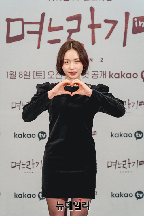 배우 최윤라가 7일 오전 온라인으로 진행된 카카오TV 오리지널 '며느라기2...ing(연출 이광영, 극본 유송이)' 제작발표회에서 포즈를 취하고 있다.