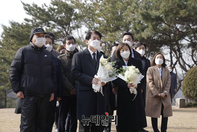 [포토] 윤보선 전 대통령 내외 묘소 찾은 안철수 후보