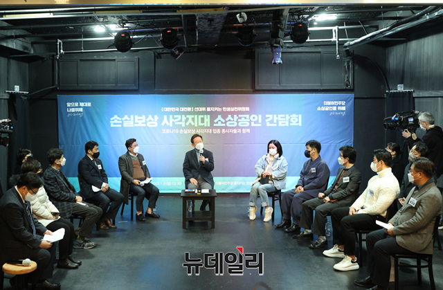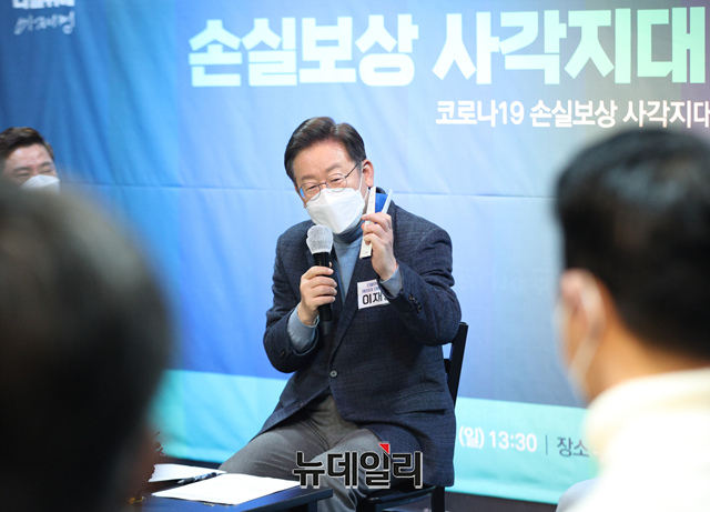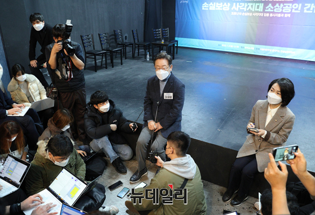 [포토] 손실보상 사각지대 소상공인 간담회 참석한 이재명