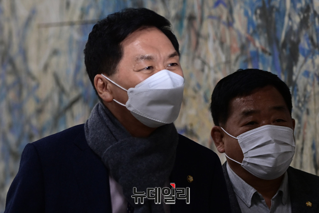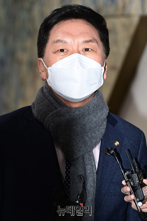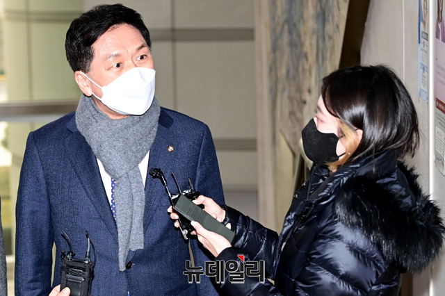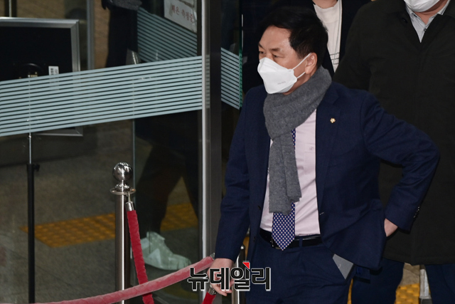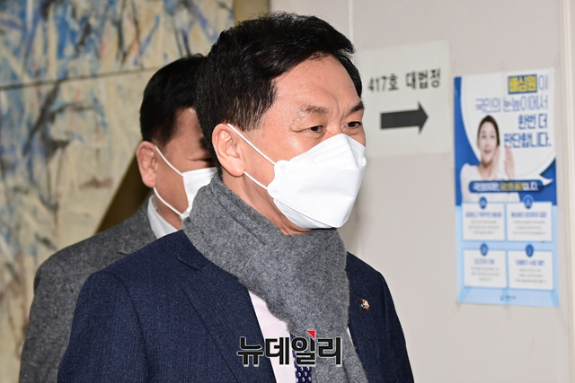김기현 국민의힘 원내대표가 10일 오후 서울 서초구 중앙지방법원에서 열린 청와대 울산시장 선거 개입·하명수사 관련 공판에 증인으로 출석하고 있다.