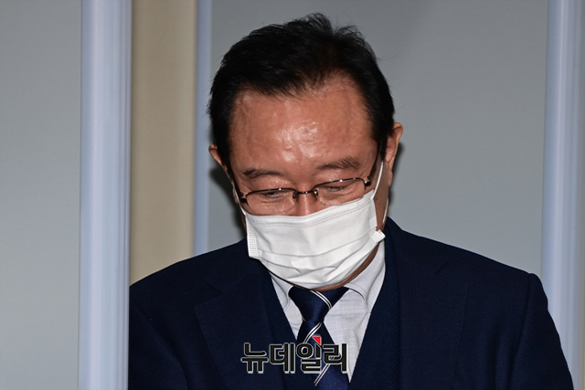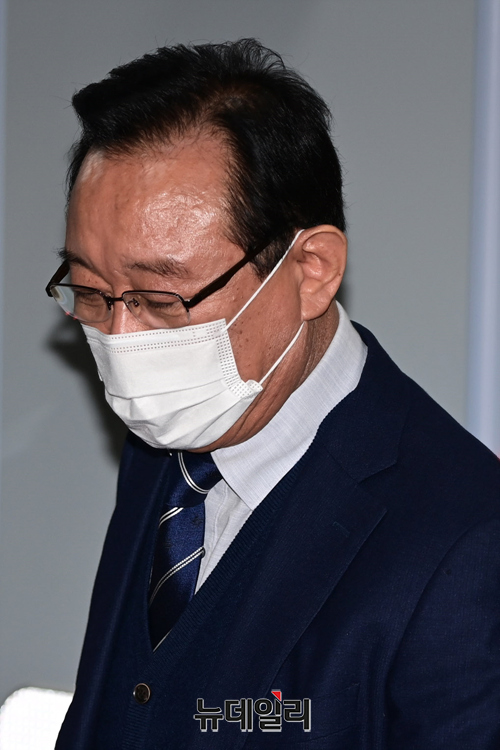 송철호 울산시장이 10일 오후 서울 서초구 중앙지방법원에서 열린 청와대 울산시장 선거 개입·하명수사 관련 공판에 출석하고 있다.