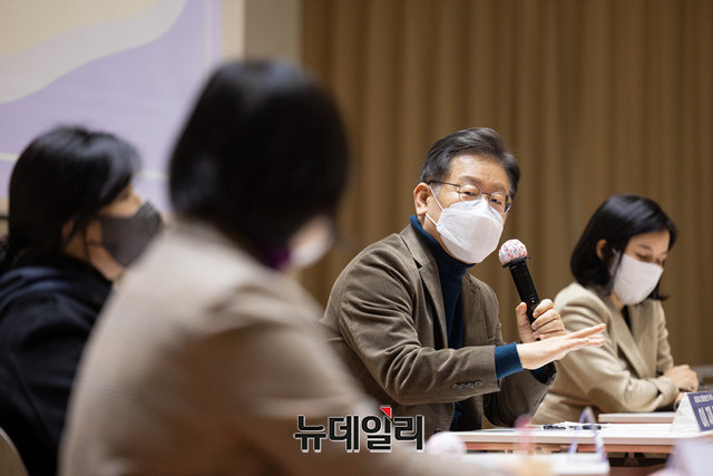 이재명 더불어민주당 대선 후보가 10일 서울 동작구 대방동 스페이스살림에서 열린 '일하는 여성을 위한 스타트업 대표 간담회'에서 발언을 하고 있다. (사진=이재명 캠프)