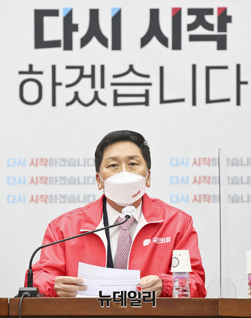 김기현 국민의힘 원내대표가 11일 오전 국회에서 열린 원내대책회의에서 모두발언을 하고 있다. (사진=공동취재단)