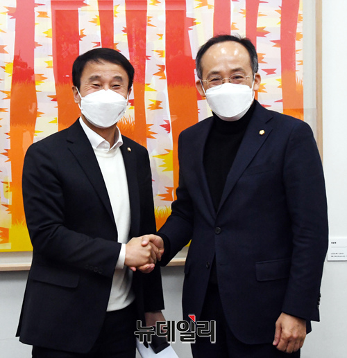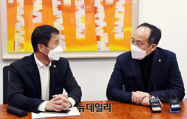 한병도 더불어민주당 원내수석부대표와 추경호 국민의힘 원내수석부대표가 11일 오후 국회에서 회동을 갖고 있다. (사진=공동취재단)