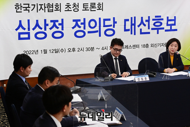 심상정 정의당 대선후보가 12일 오후 서울 중구 한국프레스센터에서 열린 한국기자협회 초청 토론회에서 발언을 하고 있다.