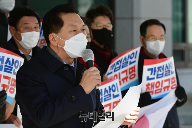 [포토] 김기현 원내대표 "간접살인 철저히 수사하라!"