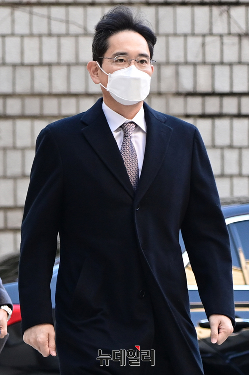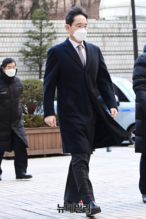 이재용 삼성전자 부회장이 13일 오전 서울 서초구 중앙지방법원에서 열린 공판에 출석하고 있다.