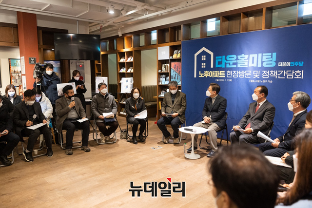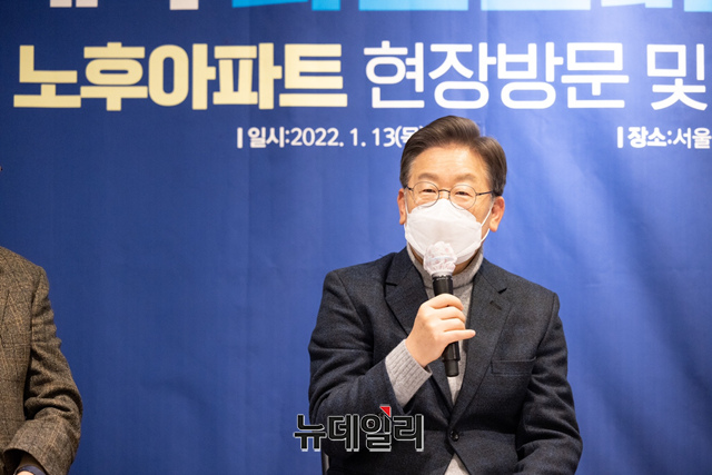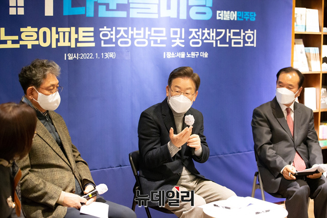이재명더불어민주당 대선후보가 13일 오전 서울 노원구 더숲에서 열린 타운홀 미팅 정책간담회에서 정책 설명을 하고 있다. (사진=이재명 캠프)