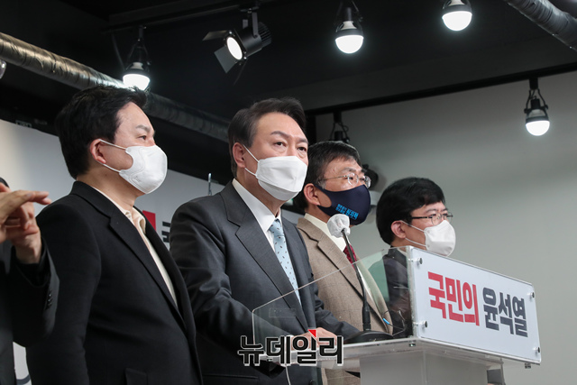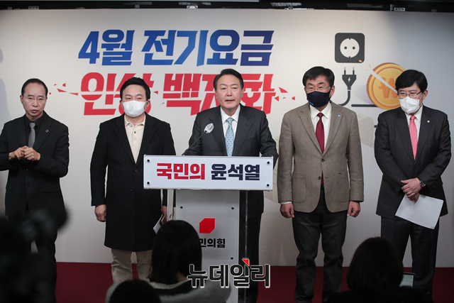 윤석열 국민의힘 대선 후보가 13일 오후 서울 여의도 국민의힘 중앙당사에서 4월 전기요금 인상 백지화 및 과학과 상식에 근거한 전력 공급 계획 수립 공약을 발표하고 있다. (사진=윤석열 캐프)